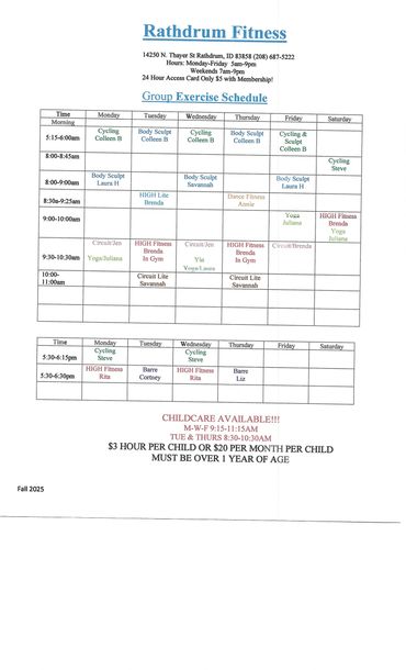 Welcome to Rathdrum Fitness. We offer a wide range of exercise equipment to meet all of your conditioning goals. We also offer private and group classes, all professionally designed and led, that target your unique needs. You will not be lost in a crowd. Our class sizes are limited and offered frequently, enabling our professional trainers to spend the time necessary to maximize results. We offer personal training in weight-training, nutrition, and cardiovascular endurance.