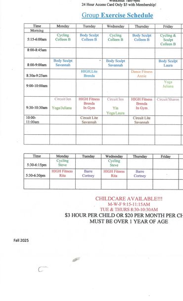 Tues/Thurs at 9:30 A.M. Monday/ Wed 5:30 PM Sat at 8:00am